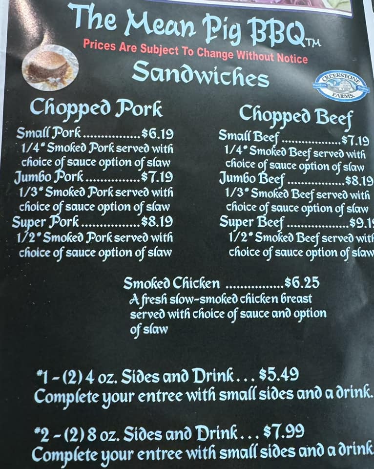 When it comes to the menu, The Mean Pig BBQ offers a delightful selection of bulk meats that showcase the restaurant's dedication to flavor and quality. You can sink your teeth into their 1 Lb. Chopped Pork for just $17.00, crafted from slow-smoked pork that practically melts in your mouth. If you're more of a beef aficionado, the 1 Lb. Chopped Beef is a must-try and is available for $19.00. For those looking to share, the Small 2 Meat Plate serves up a tantalizing combination of sliced brisket and chopped pork, along with generous side dishes, all for just $13.99.