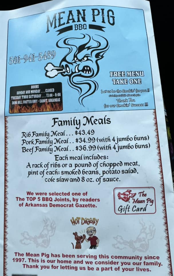 Whether you're a local or just passing through, make The Mean Pig BBQ your next destination. With its warm atmosphere, mouthwatering menu, and a team that genuinely cares about your experience, it’s no wonder this spot is dubbed the best BBQ in Cabot. You’ll not only leave satiated, but you’ll likely start planning your next visit before you even exit the door!